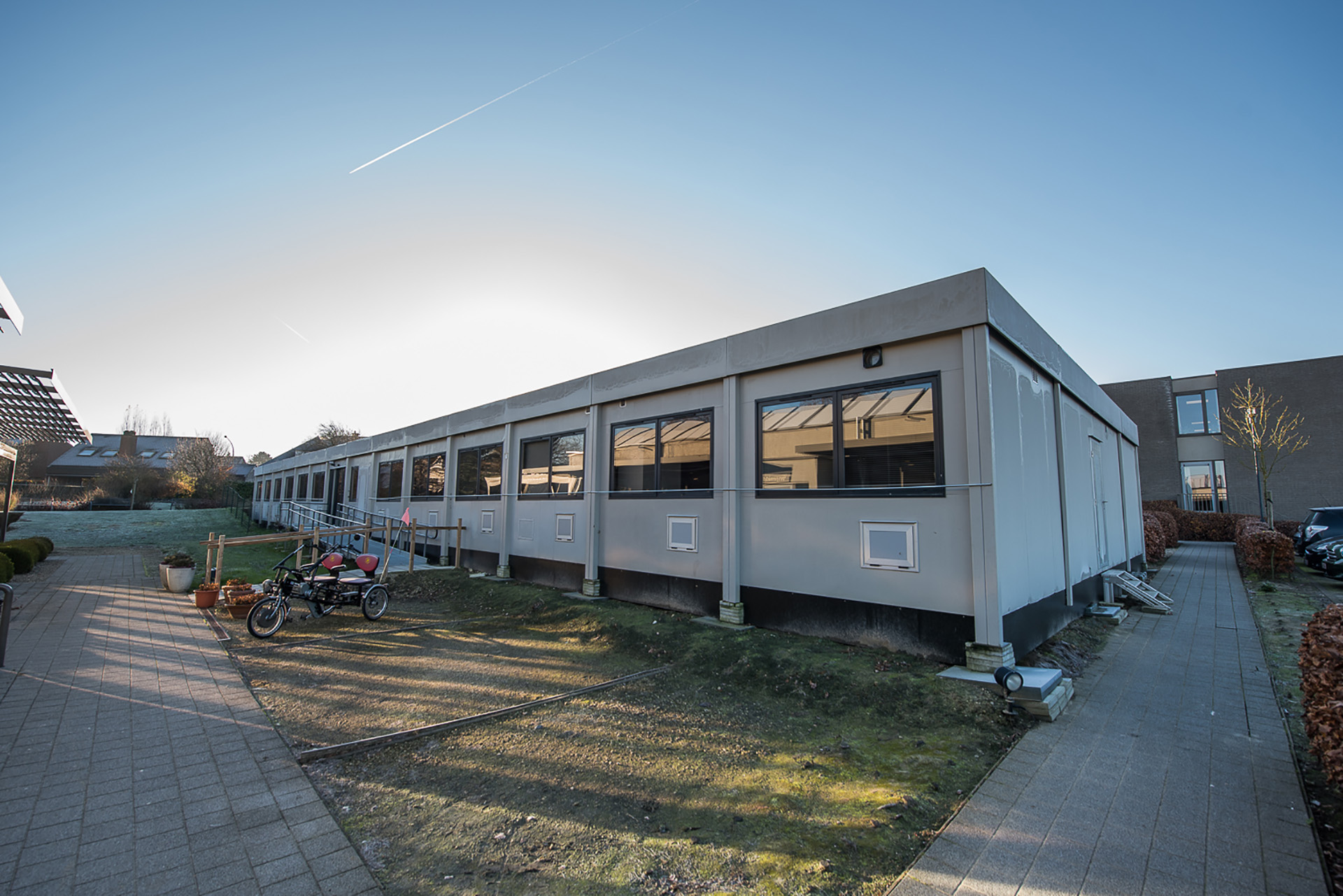 La maison de repos et de soins (MRS) De Wingerd, est un établissement dédié aux personnes atteintes de démence. Les résidents ont besoin de repères clairs et d’une ambiance qui leur est familière. Des prescriptions et des normes sanitaires strictes sont en vigueur dans le secteur des soins de santé et celles-ci devaient également être respectées dans les unités résidentielles provisoires. Jan Vanwezer a trouvé en Portakabin le partenaire respectueux qu’il cherchait : "Portakabin à participer à la procédure d’appel d’offres pour nos unités résidentielles provisoires. Au vu de l’offre, de l’approche sur mesure et du devis, Portakabin était le meilleur candidat. Nous n’avons regretté ce choix à aucun moment."