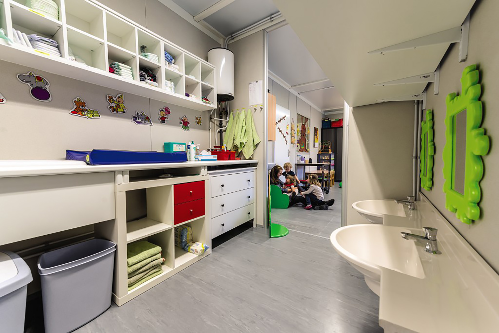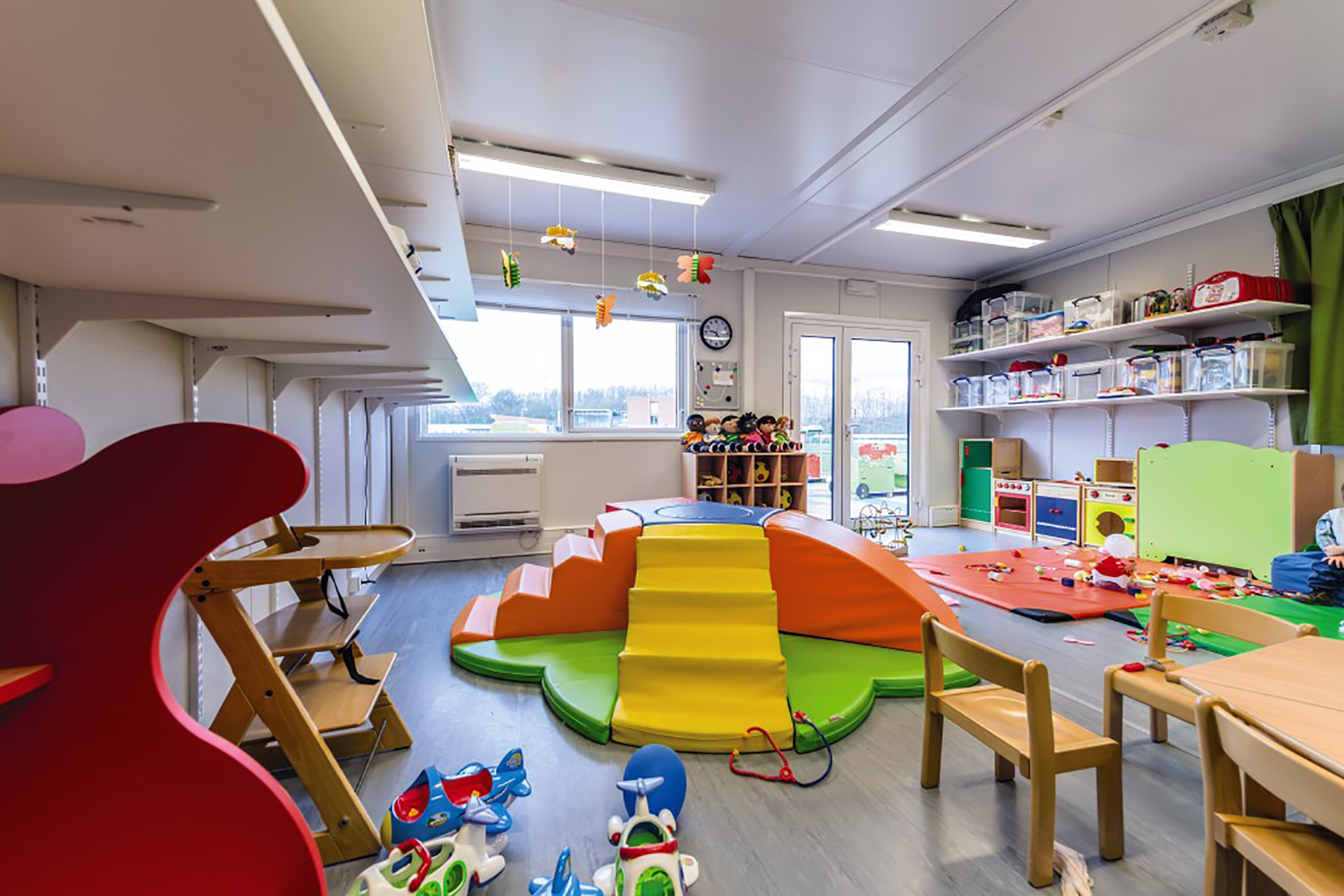 "À peine 6 semaines après notre demande, les 26 enfants et les puéricultrices ont emménagé dans le bâtiment provisoire de Portakabin. Mais qui devait surtout convaincre Portakabin avec son bâtiment modulaire ? Les parents. Logique : ils ne veulent que le meilleur pour leurs enfants. Tout devait donc être parfaitement conforme. Et Portakabin l’a fait aussi. Portakabin est la seule entreprise qui nous a promis et fourni une solution rapide et de qualité en si peu de temps. L’isolation du bâtiment modulaire est aussi parfaitement en règle. Les puéricultrices ne tarissent pas d’éloges sur leur nouveau local."