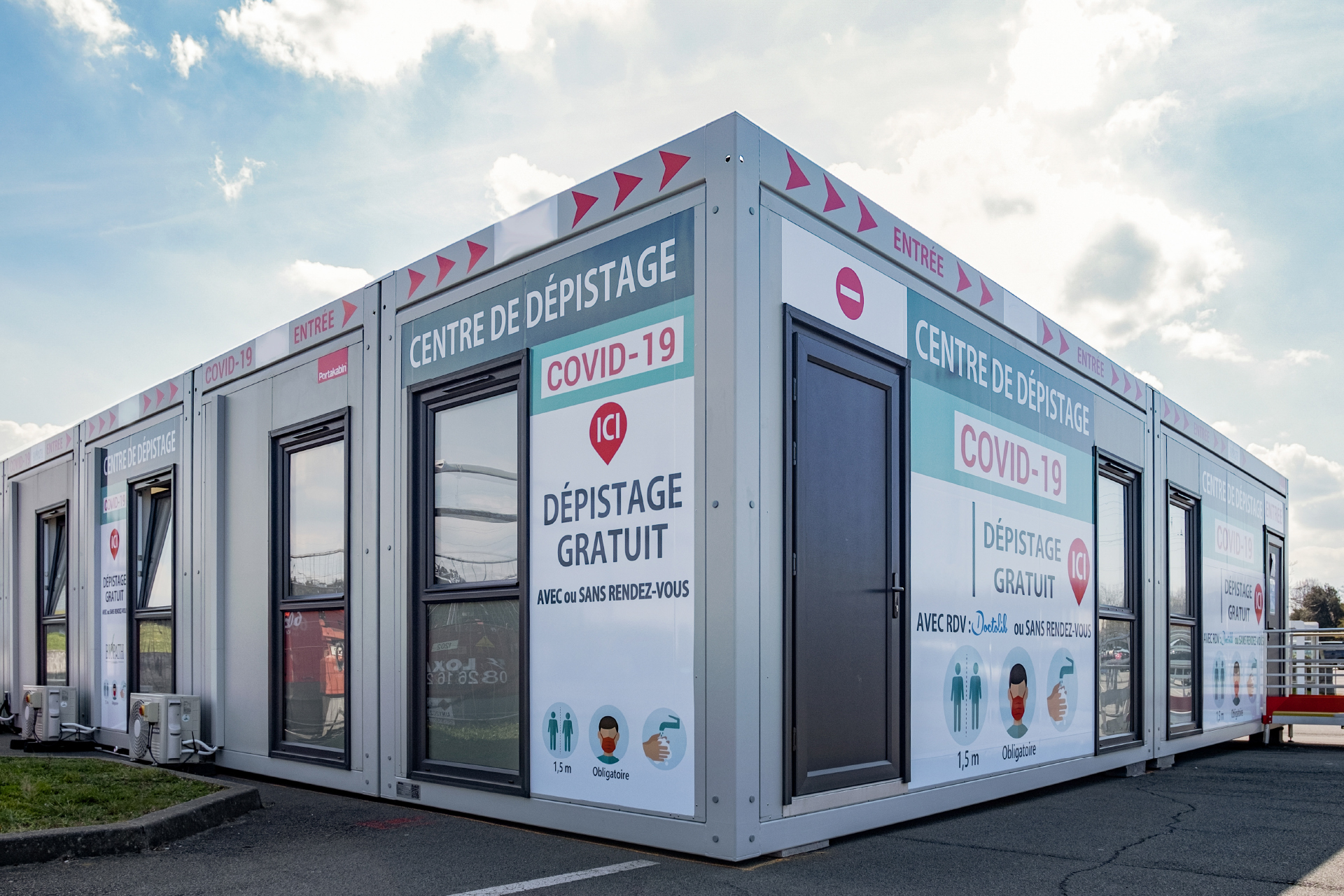 Fast 200 m2 Laborfläche wurden innerhalb einer Woche nach Auftragseingang montiert. Das Gebäude hat einen L-förmigen Grundriss mit einer Rampe für einen barrierefreie Zutritt, Klimaanlage und eine auf Wunsch des Kunden angebrachte Außenverkleidung mit Vinylfolie. Das Gebäude entspricht der europäischen Richtlinie ErP für Krankenhäuser und verfügt über große Dreh-Kipp-Fenster für eine einfache Belüftung.