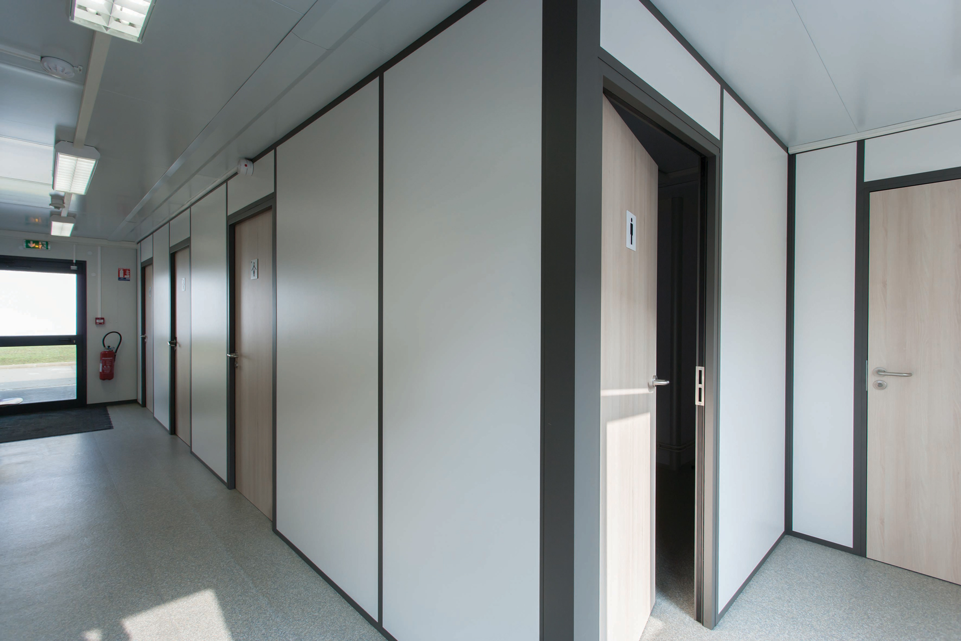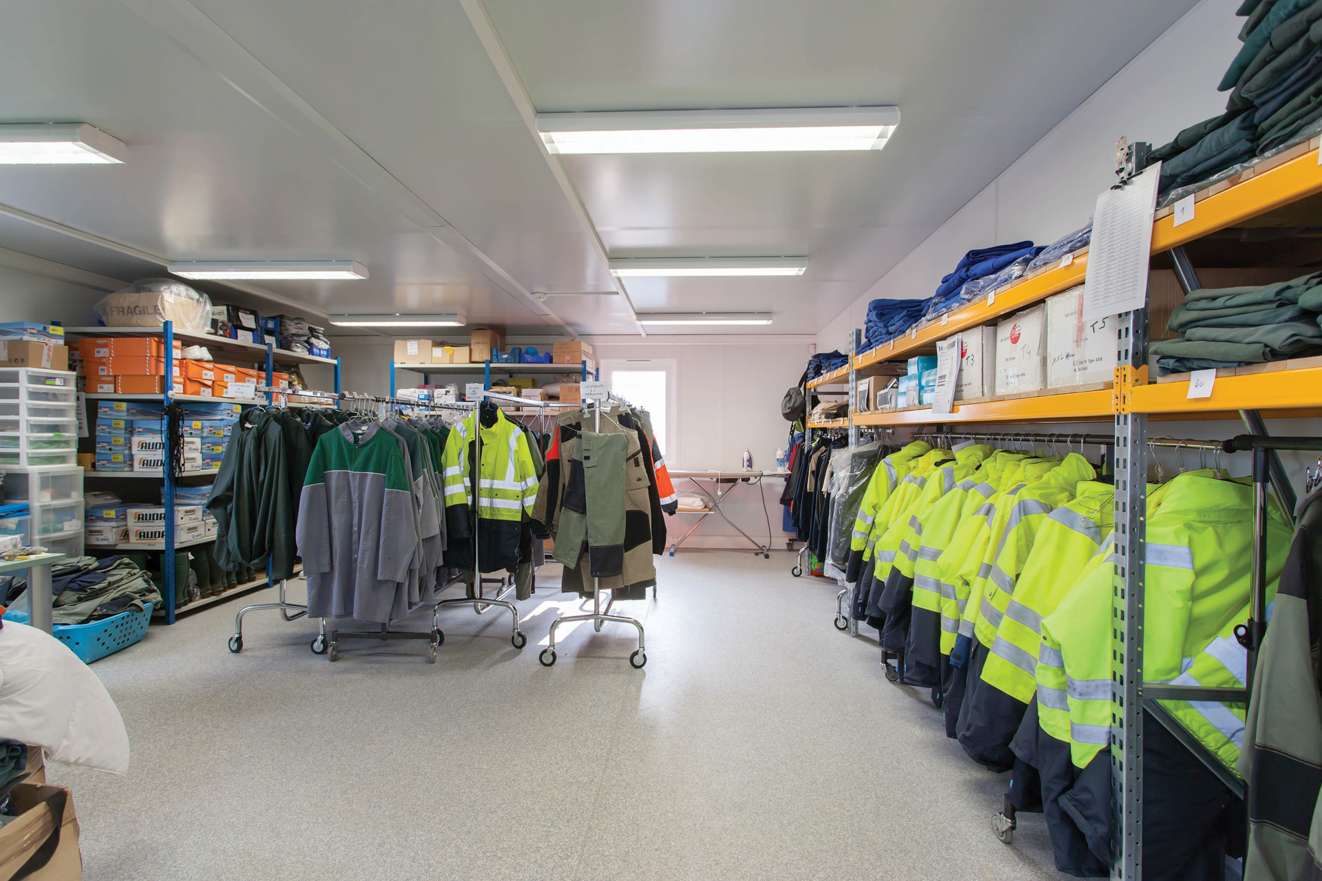 Dans le troisième bâtiment posé, des vestiaires et des douches sont à la disposition des ouvriers et personnels encadrants.