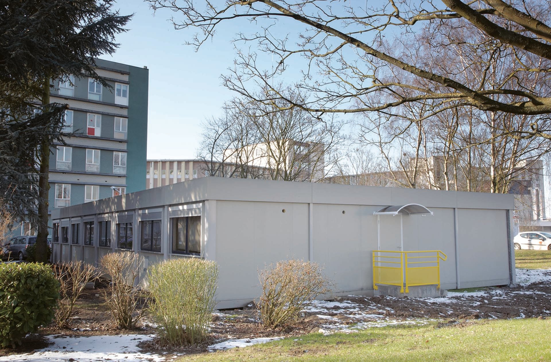 Le fonctionnement du service n'a donc pas du tout été perturbé depuis son déménagement. La qualité de l'isolation phonique est jugée tout à fait correcte par les utilisateurs des cabinets médicaux modulaires. Tout le monde apprécie également la lumière naturelle dans les bâtiments.