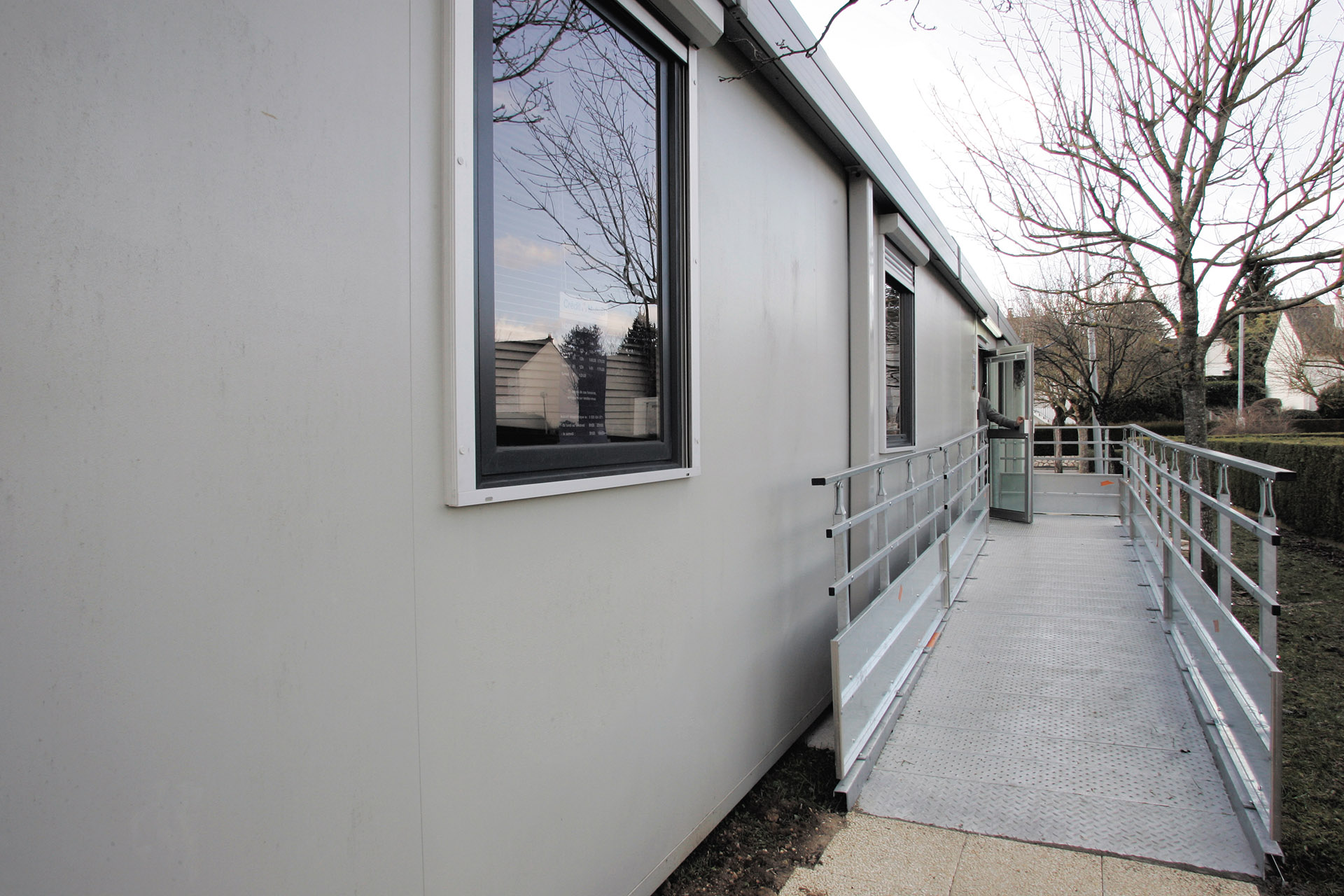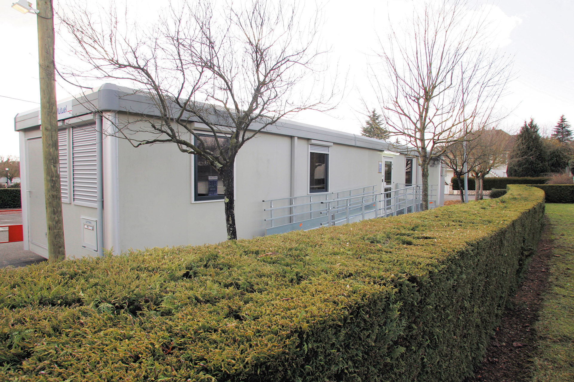 Le bâtiment modulaire Portakabin a été aménagé de la même façon que l'agence actuelle : hall d'accueil, bureaux pour assurer la confidentialité et les éléments de sécurité comme les détecteurs de présence, les radars et le sas pour les convoyeurs de fonds ont été complètement intégrés.