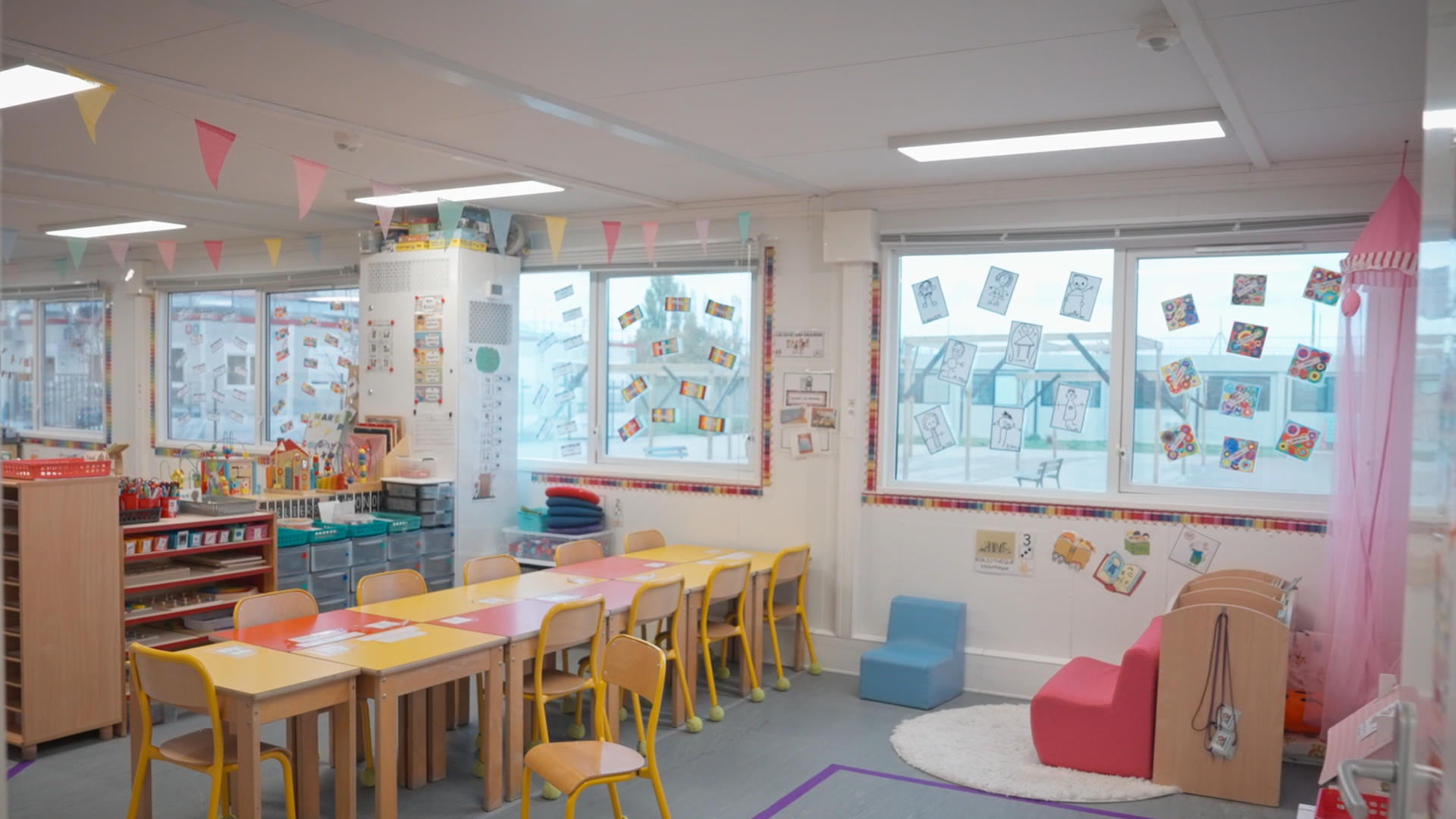 La solution proposée par Portakabin repose sur un ensemble de bâtiments de la gamme Akademy, spécialement conçus pour répondre aux exigences du milieu scolaire. Ces modules offrent des espaces adaptés aux enfants et entièrement sécurisés.