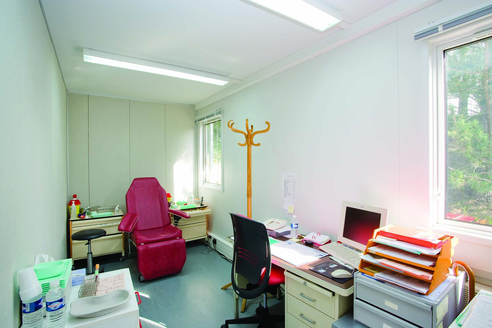 Très vite, le dossier est bouclé. L'emplacement idéal est trouvé. Le bâtiment d'une cinquantaine de mètre carrés accueillent les bureaux des médecins, de l'infirmière ainsi que la salle d'attente. Le module Portakabin, tout neuf, bénéficie d'une excellente isolation acoustique externe. Pour satisfaire le besoin de confidentialité, il est doté de cloisons internes spéciales, et la climatisation y assure une température stable.