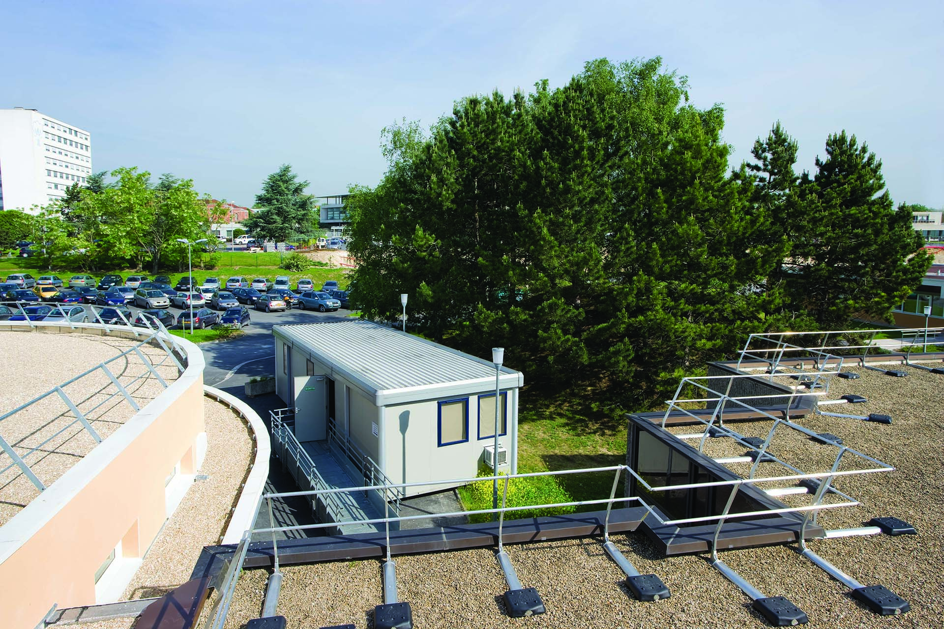 L'institut Jean Godinot, centre régional de lutte contre le cancer de Champagne-Ardenne, a pour mission la prévention, le dépistage, le diagnostic et le traitement des cancers. Très actif dans le domaine de la recherche clinique, l'institut se distingue en proposant à chacun de ses patients une étude personnalisée. Durant des travaux de réaménagement menés dans l'hôpital, une solution a dû être trouvée pour accueillir les consultations. L'installation, certes temporaire, devait toutefois être performante afin d'accueillir les patients dans des conditions optimales. De plus, le nouveau bâtiment ne devait pas être situé à plus de 25 mètres de leur centrale informatique, pour des problèmes de transmission de données.