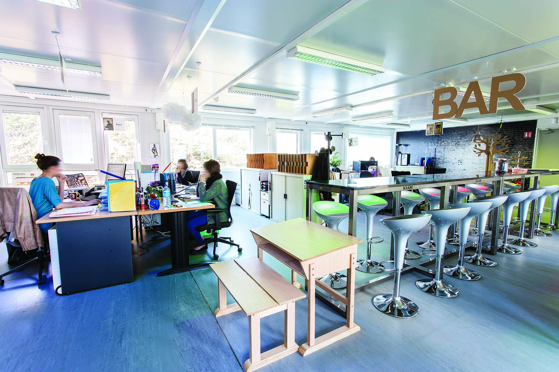 - Open space, bureaux individuels, et salles de réunion