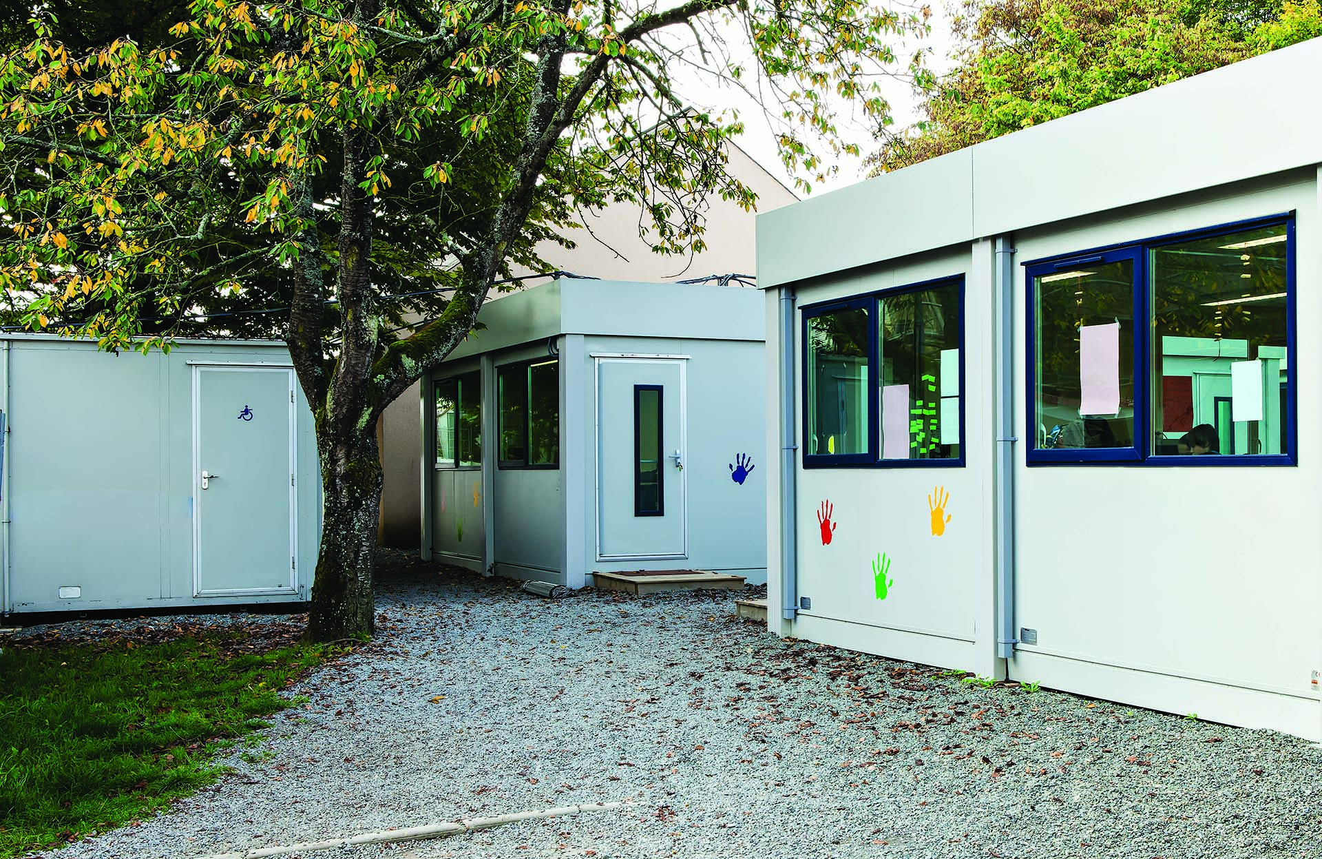 Trois salles de classe temporaires ainsi qu'un module à usage de bureau pour les professeurs. Tout cela a été implanté dans la cour arrière de l’école.