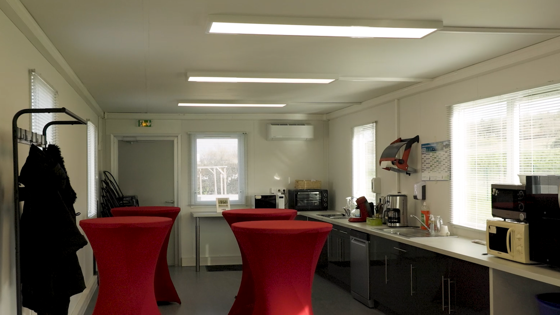 Portakabin a proposé un bâtiment autonome, rapidement déployable, offrant plus de 50 m² d’un seul tenant pour permettre la relocalisation du réfectoire à l’extérieur du site.