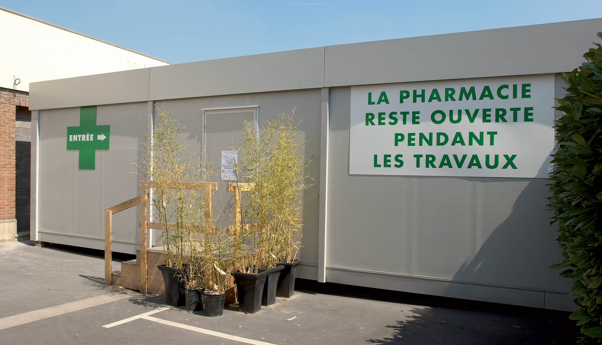 Des bâtiments modulaires pour une officine temporaire pendant les travaux