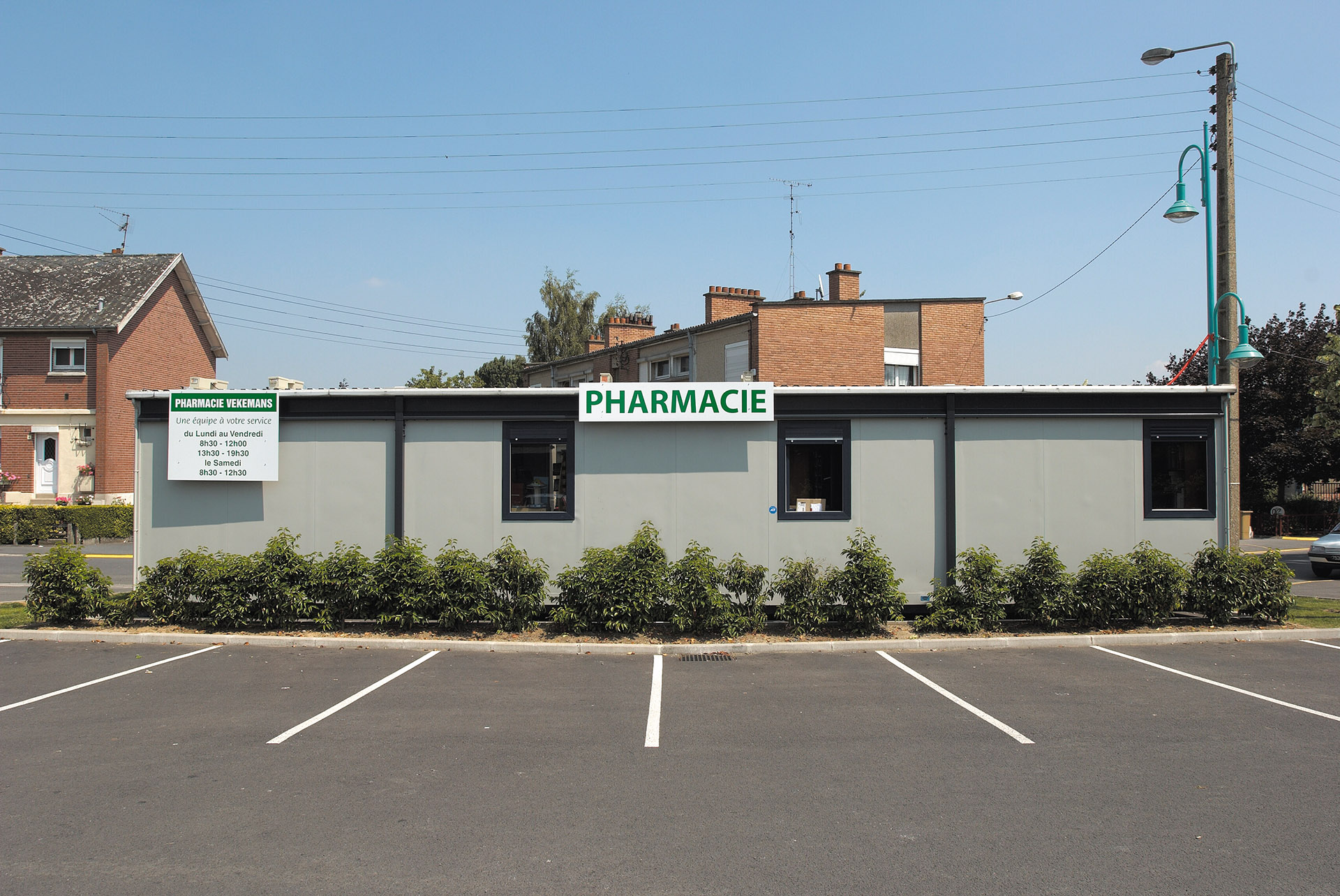 Des bâtiments modulaires pour une officine temporaire pendant les travaux