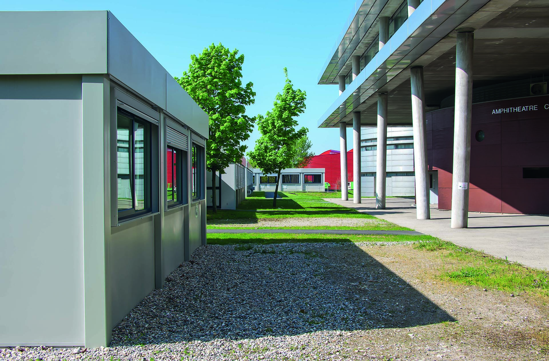 Portakabin a mis en place à Bron, au sud-est de Lyon, plus de 900m² de salles de cours pour accueillir étudiants et professeurs. Ces classes sont conformes aux normes éducatives et permettent aux étudiants de se former dans un cadre spacieux, lumineux et aéré.