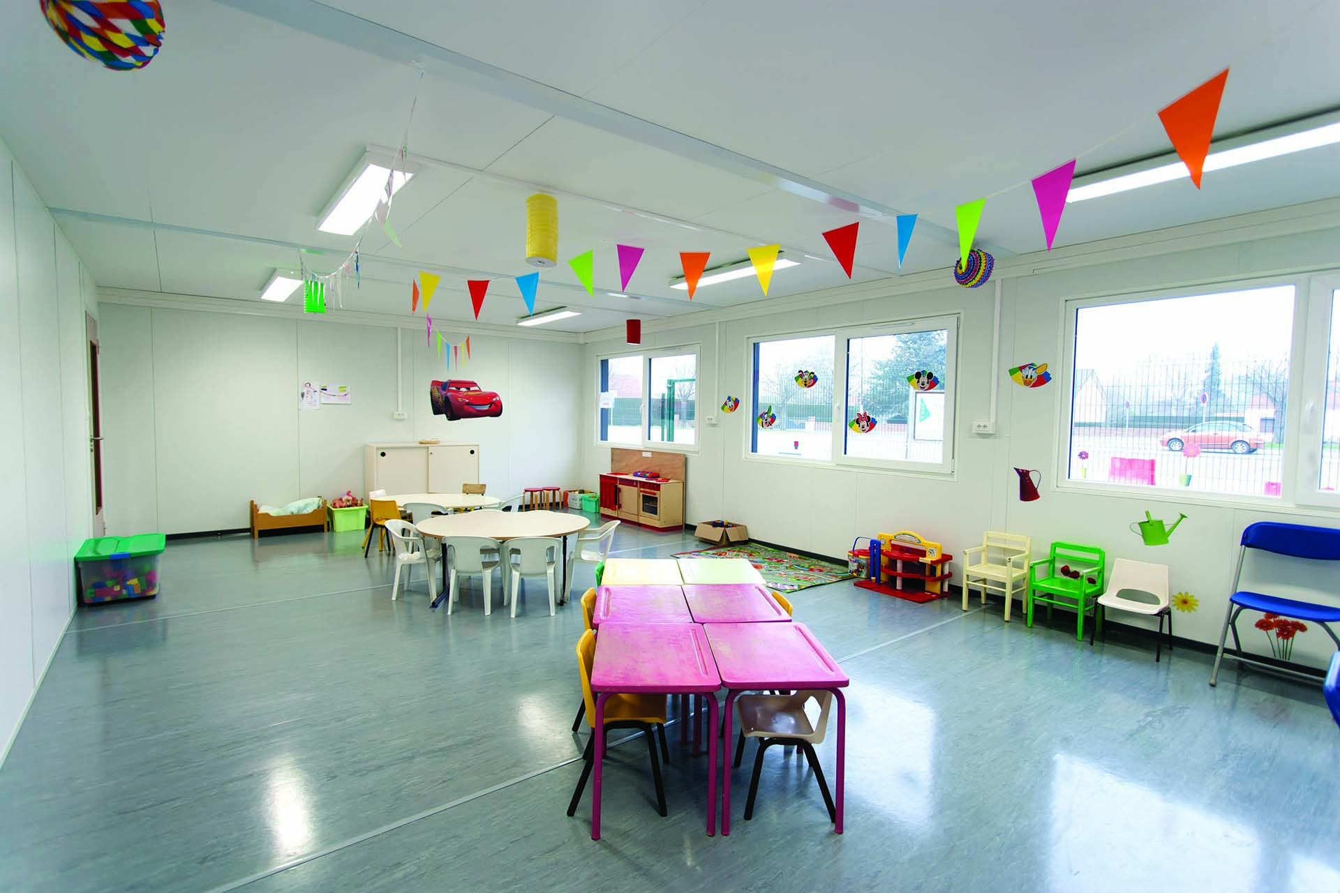 L’adjointe au maire chargée de l’enfance et de la jeunesse recherchait une solution rapide pour que leurs enfants ne soient pas cantonnés toute la journée dans les mêmes locaux. Là où un bâtiment traditionnel aurait nécessité trois ans de construction, il a fallu moins de cinq mois pour ouvrir les portes d'un entre périscolaire signé Portakabin. Une surface de plus de 370m² habillée de panneaux architecturaux naîtra ; composant un bardage multicolore gai et esthétique.