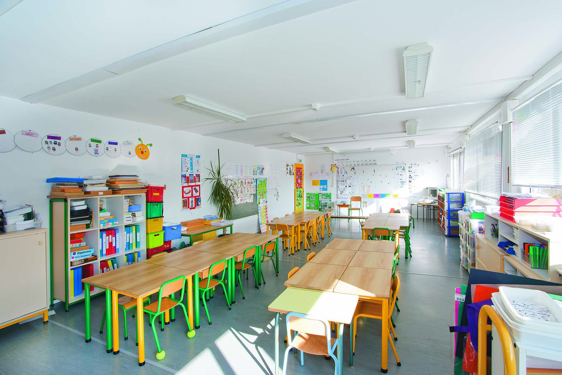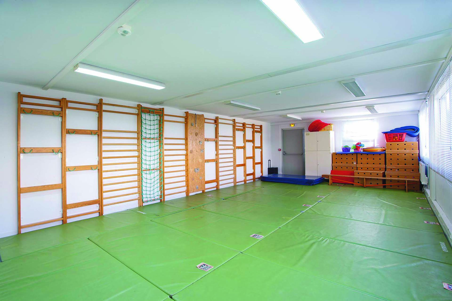 - Classes, dortoirs, garderie, salle d'éducation physique, bureaux et sanitaires prévus pour les 3-6 ans