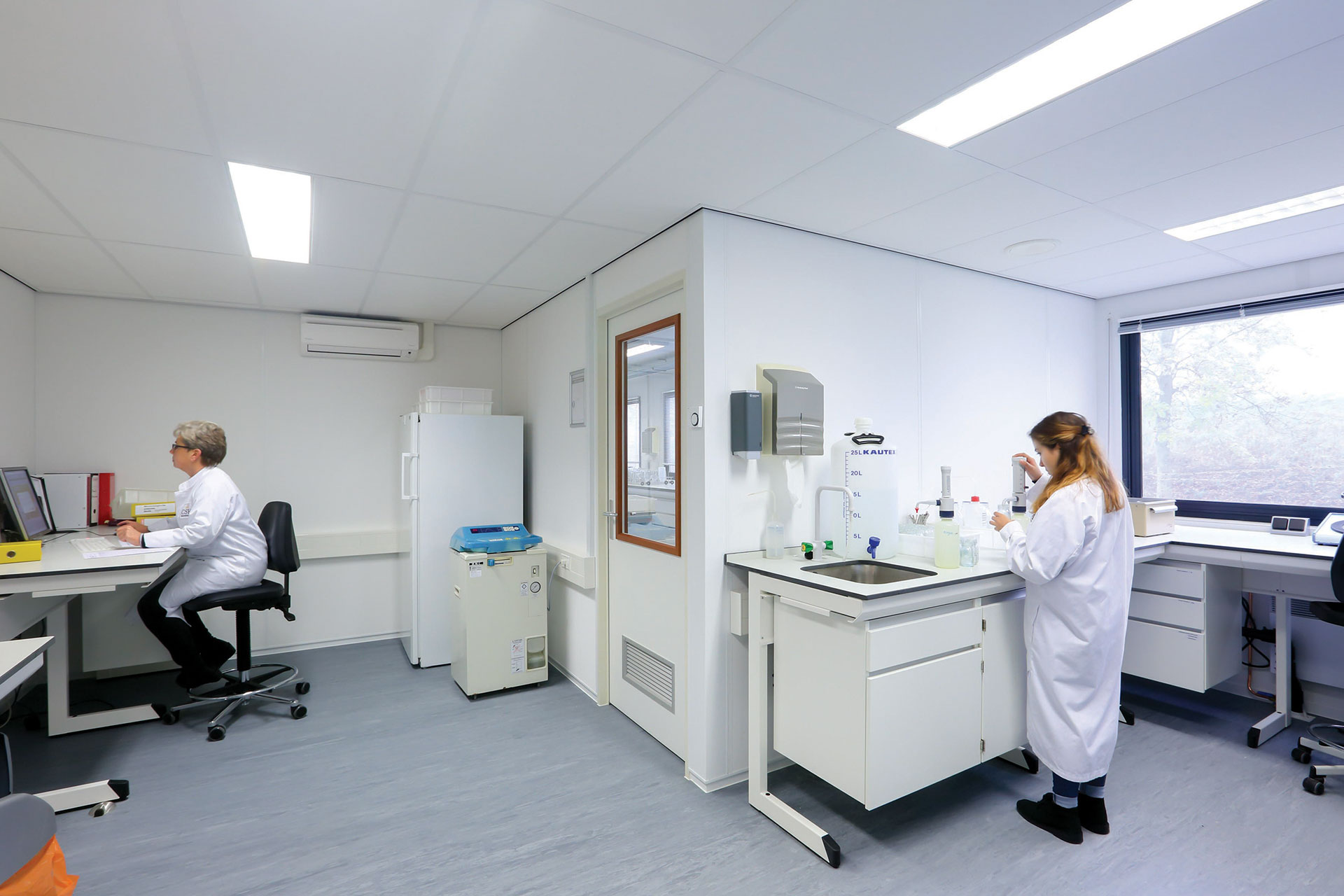 À la livraison, votre laboratoire Portakabin est entièrement équipé en plomberie et connectiques (électricité, gaz et transmission de données). L'agencement intérieur et le mobilier peuvent être conçus pour répondre à une large palette de spécialisations, dont hématologie, histopathologie, pathologie chimique et microbiologie.