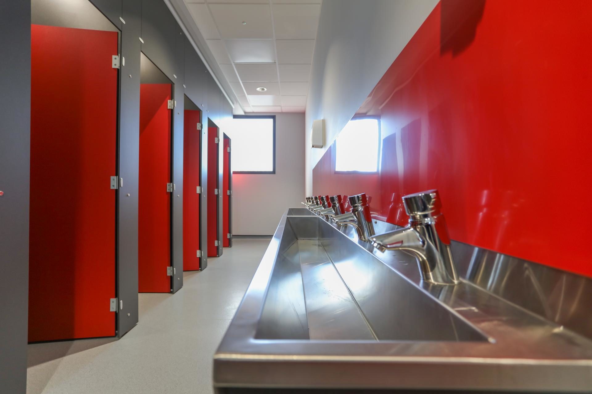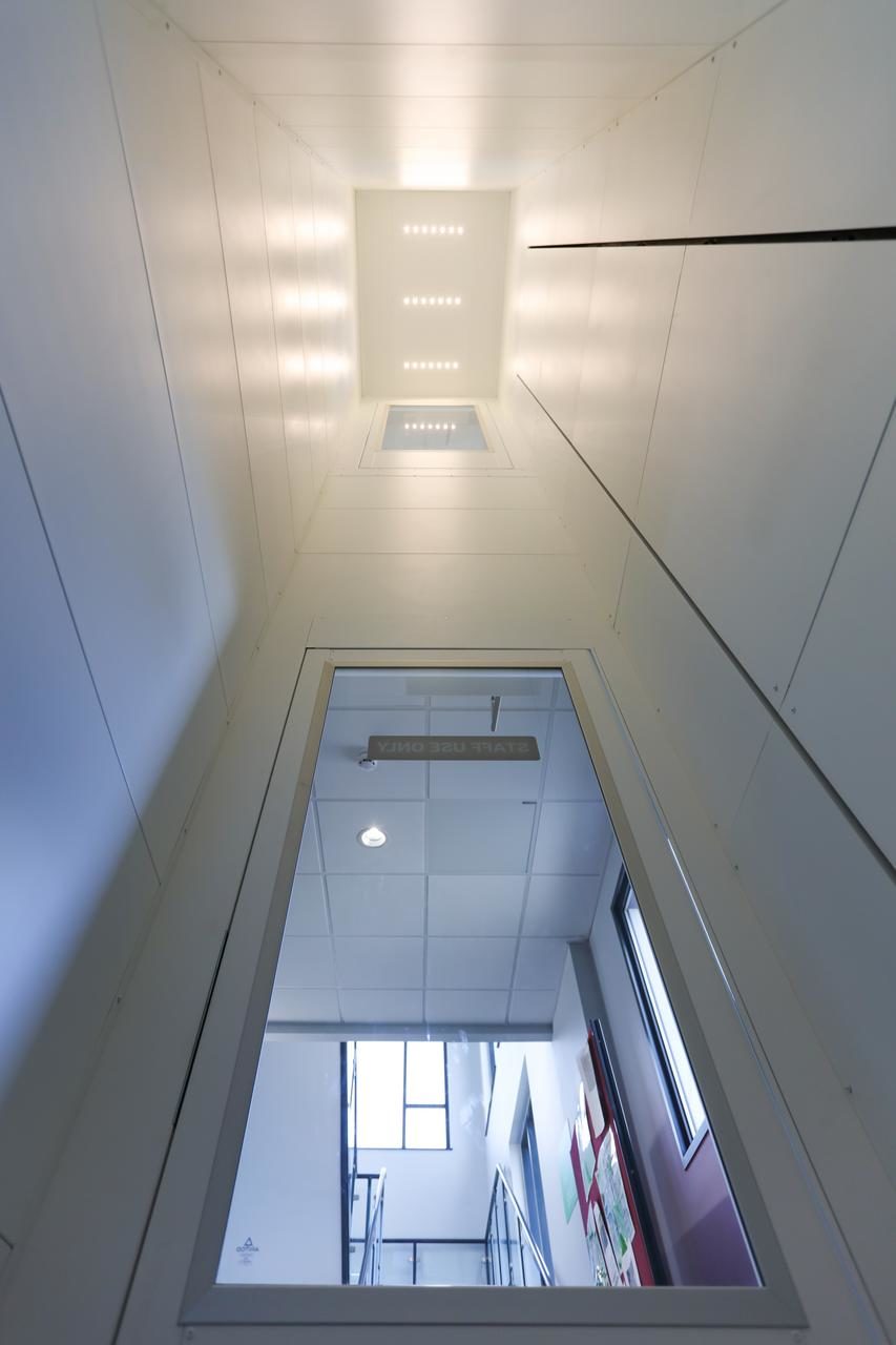 The 1463m² three-storey building was configured with split access for maths and the resource centre, with no through-way between the two. Built on a sloping site, enabling works looked at the level access straight away. A standout design and high-quality internal fit-out were of high importance so colour schemes and external finishing were carefully considered to ensure the building made a statement yet also blended with the current estate. Additional facilities include a separate two-storey gym with changing rooms and office space on the ground floor.