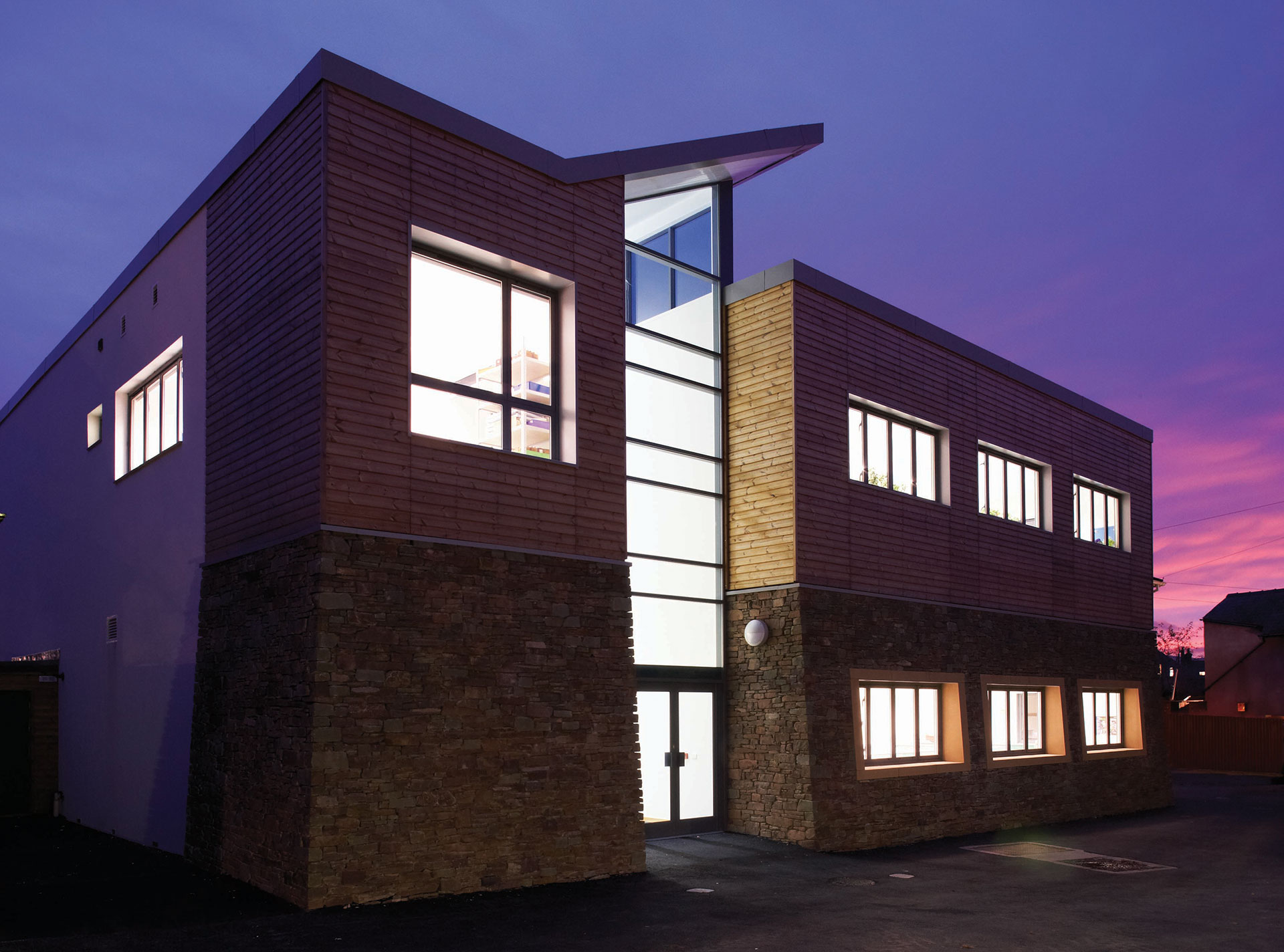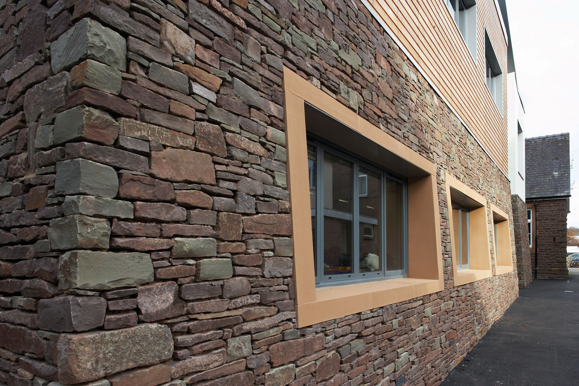 The design of the new building responds to its National Park location by incorporating local materials, such as Welsh sandstone from a nearby quarry, together with render and timber cladding to complement the surrounding architecture.