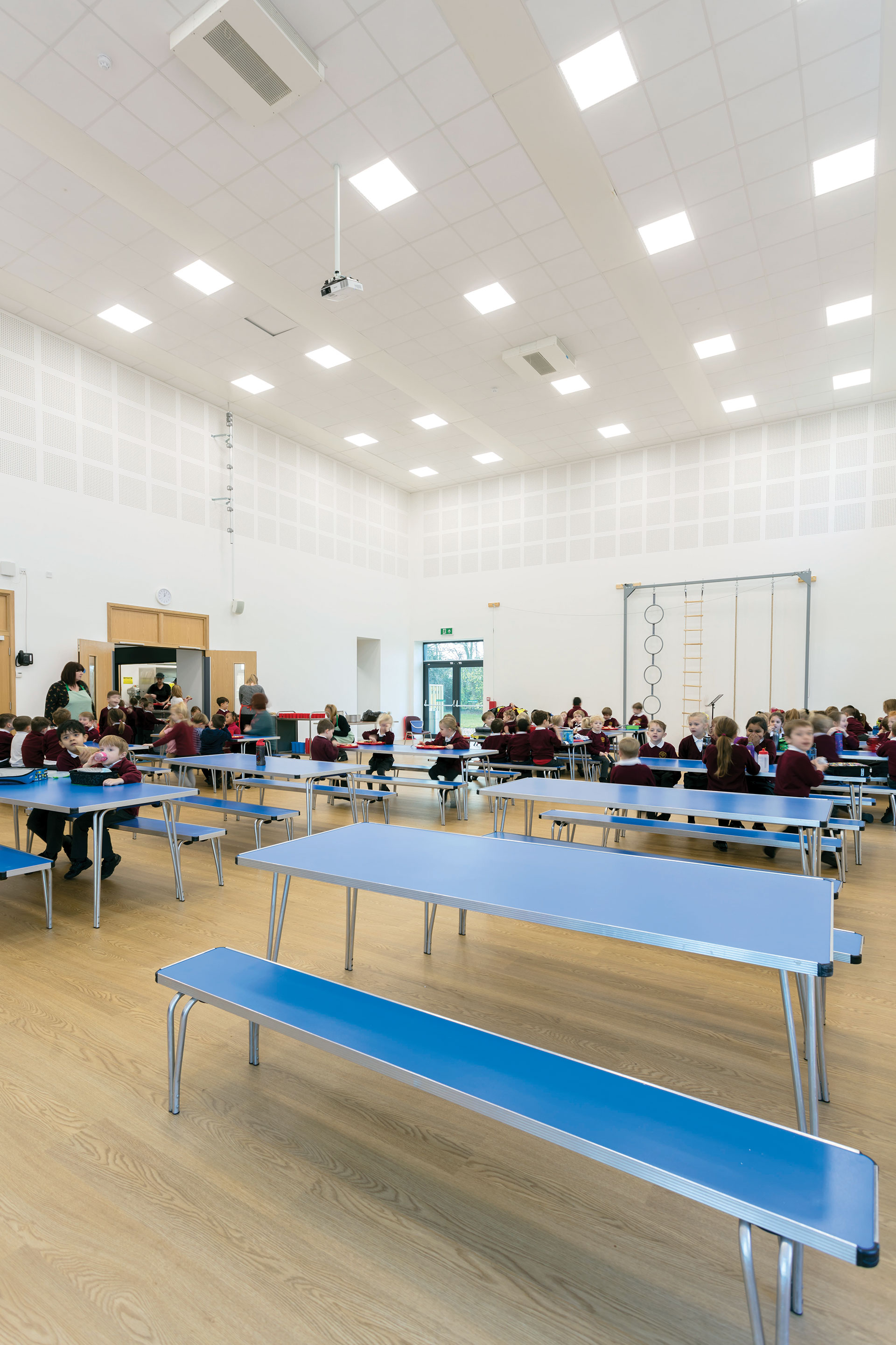 As the hall has a factory finished concrete floor as standard, customers can start work on it right away in terms of fitting any systems at high-level, internal fit out (furniture such as climbing frames, basketball hoops) and applying the floor finish, saving huge amounts of time on site.