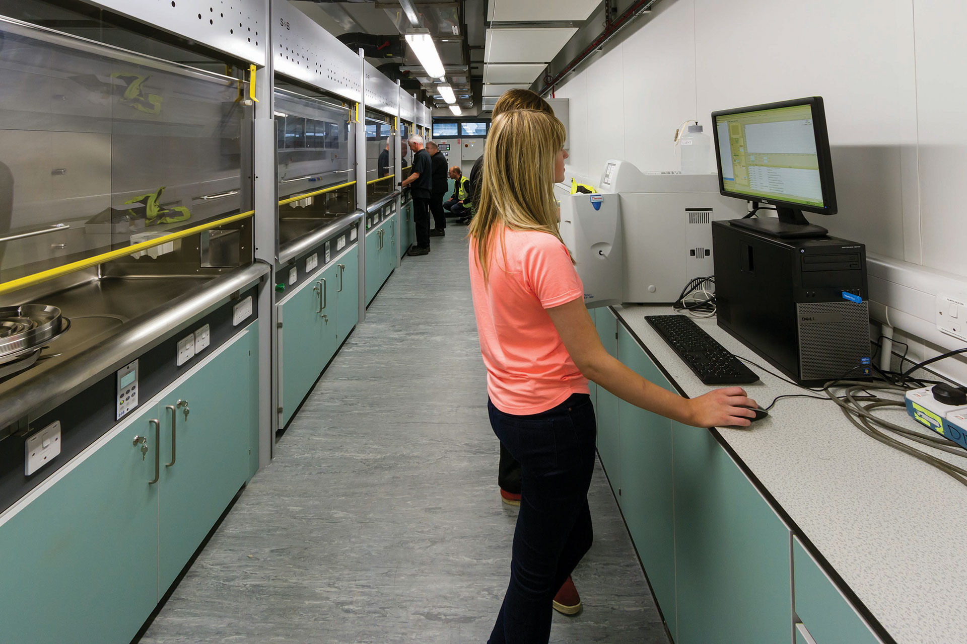 The building incorporates 36 fume cupboards, glove boxes and a specialised nuclear ventilation system, as well as acid and non-acid fume extraction, HEPA filtration and a discharge stack. Each laboratory has one-hour fire containment to the entire building fabric – a first for the modular building industry.