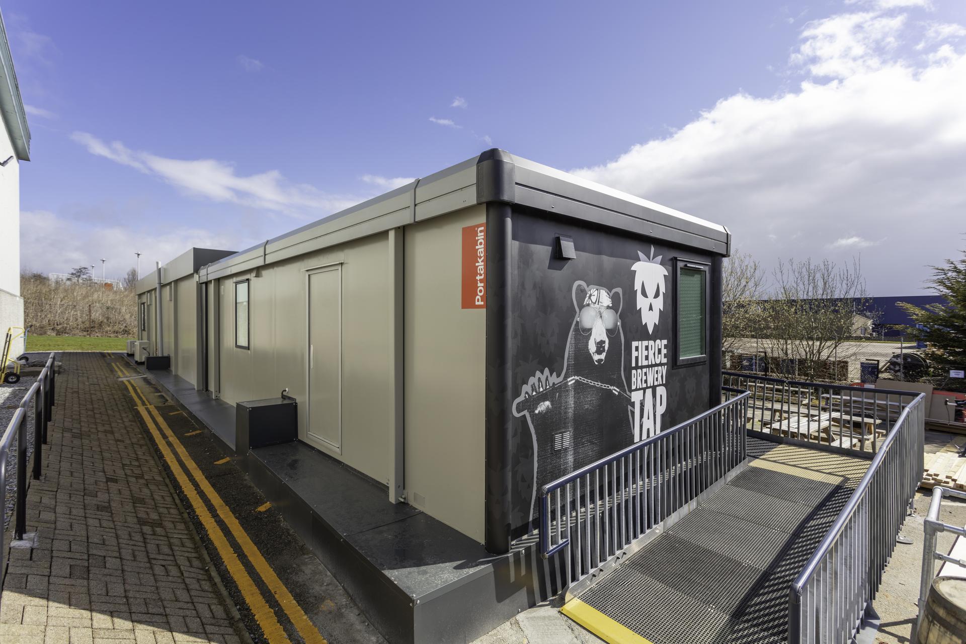 Able to accommodate up to 70 visitors at a time, the building is fully accessible and open plan, complete with linked welfare facilities and a bar area to support events. Portakabin was also able to deliver a high-quality vinyl wrap in the eye-catching Fierce Beer branding.