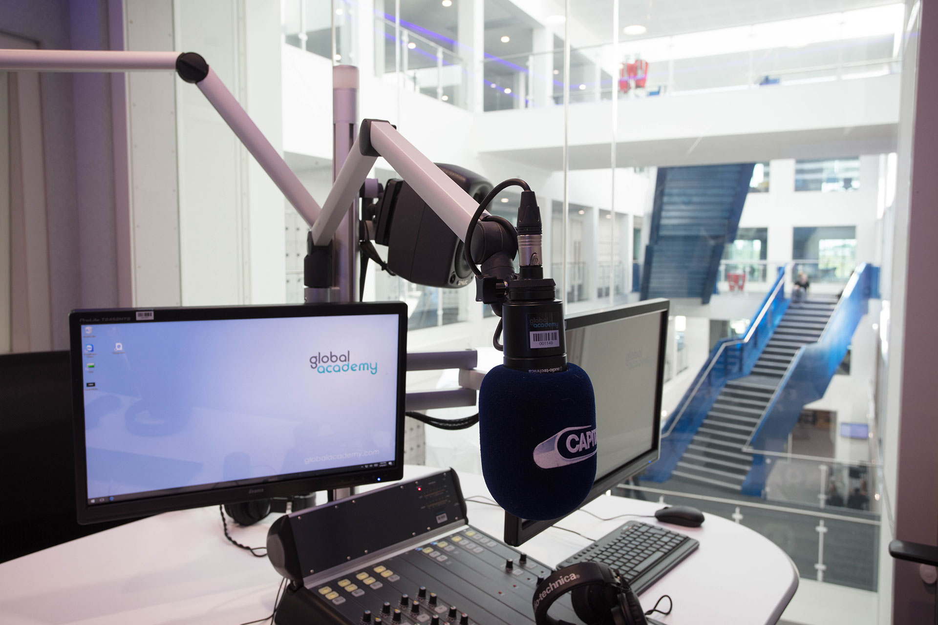 The four-storey purpose built school building combines state-of-the-art TV and radio studios with flexible teaching spaces, informal learning zones, a dining area, a sports hall and a lecture theatre.