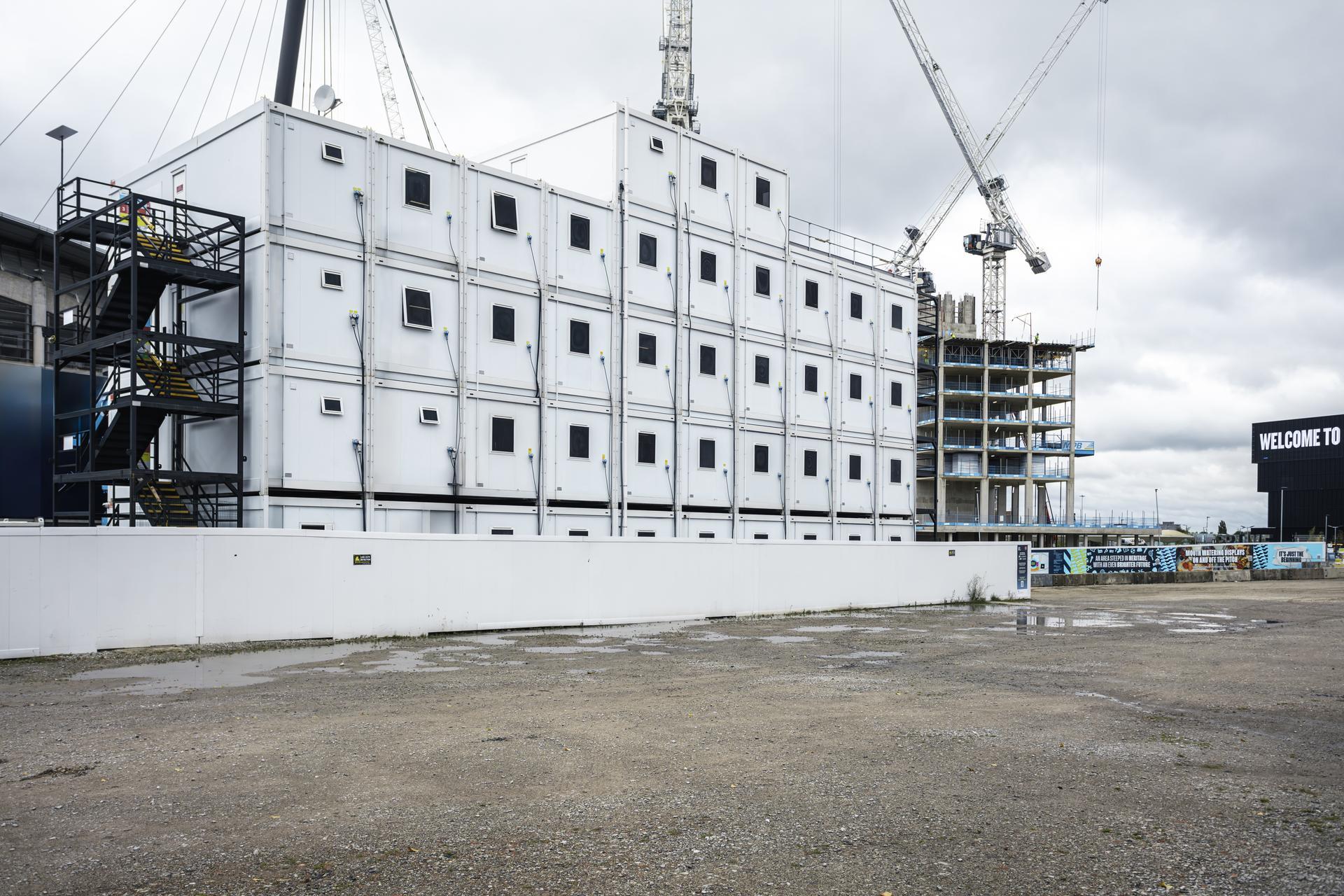 Due to limited footprint available for the main site accommodation building collaboration between the Portakabin and SISK design and engineering teams, was essential to ensure a 5-storey option could be installed in a safe manner. Additionally, logistical constraints around the busy stadium meant that lifting and deliveries had to be carefully planned to avoid disruption.