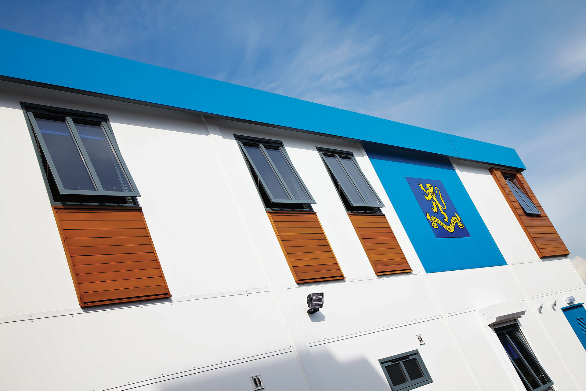 Portakabin constructed the building from refurbished steel-framed modules and handed it over after just six weeks on site. The use of a recycled modular building allowed the scheme to be constructed during school holidays and reduced the programme by around 70% compared to traditional site-based building methods.