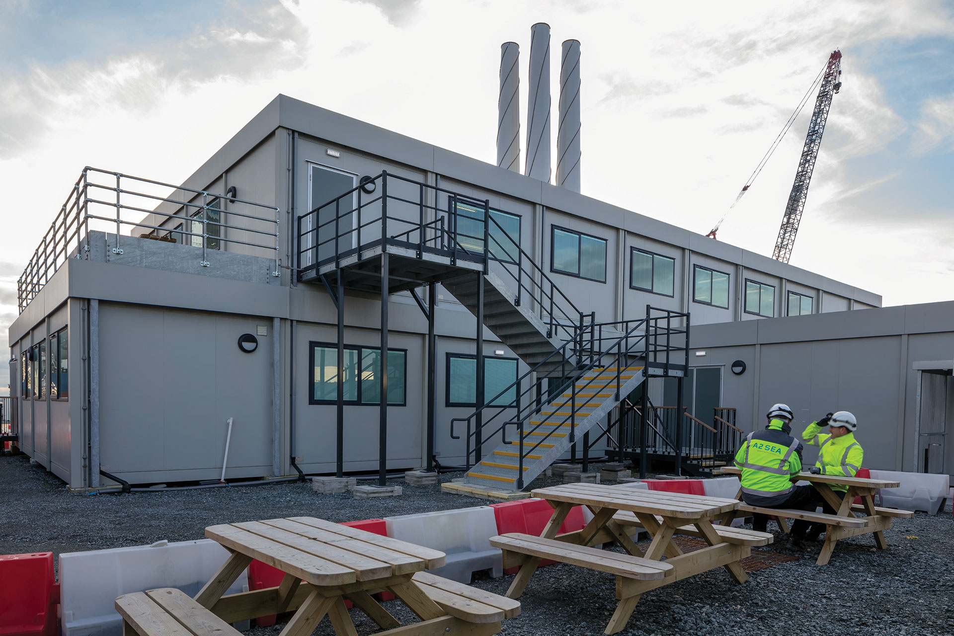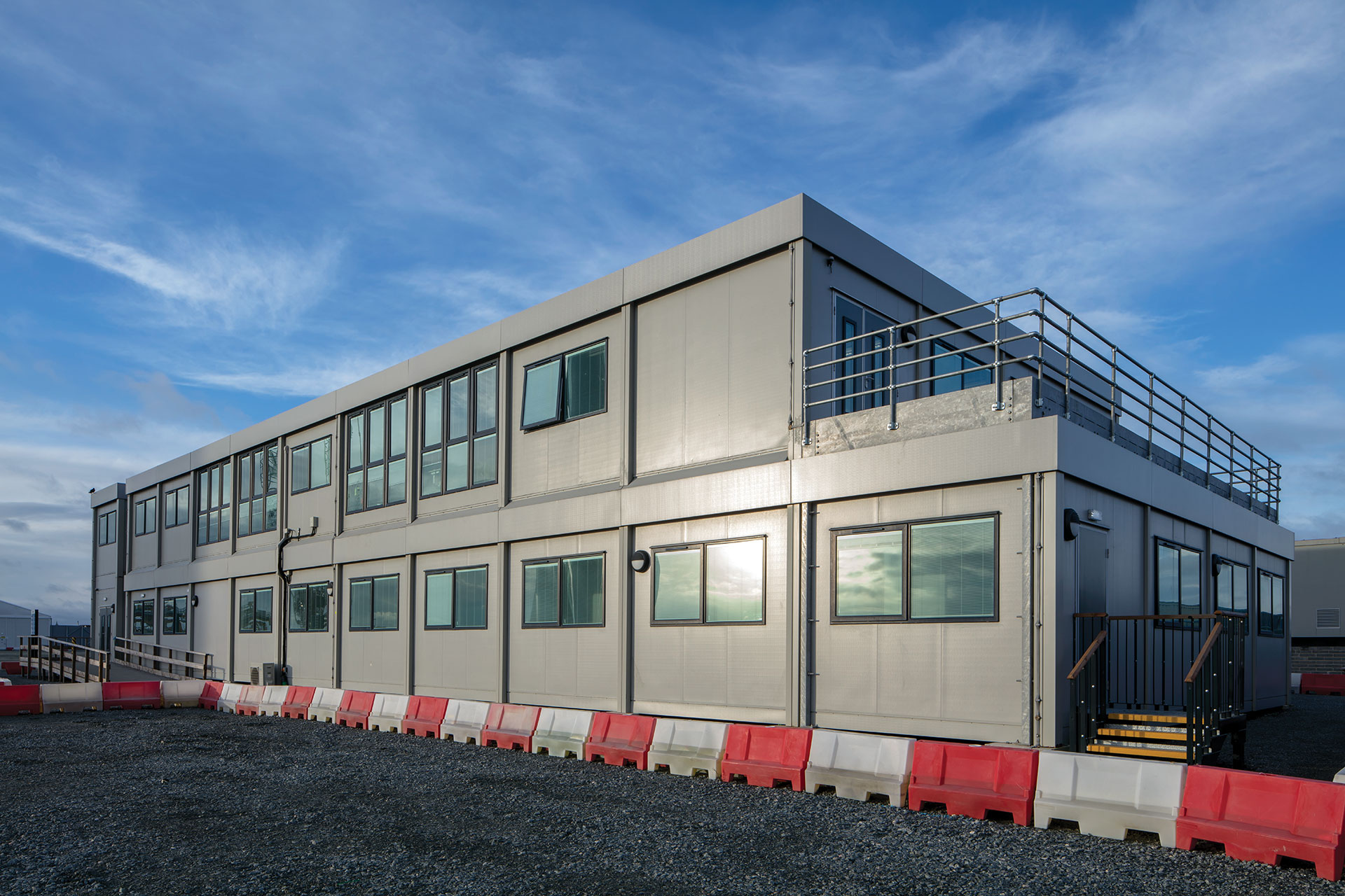 Using a hybrid approach, where modular and traditional construction can come together, meant that a viewing platform could be installed onto the building for clients and staff to look out over the River Humber as the wind turbines are taken offshore for assembly and installation.