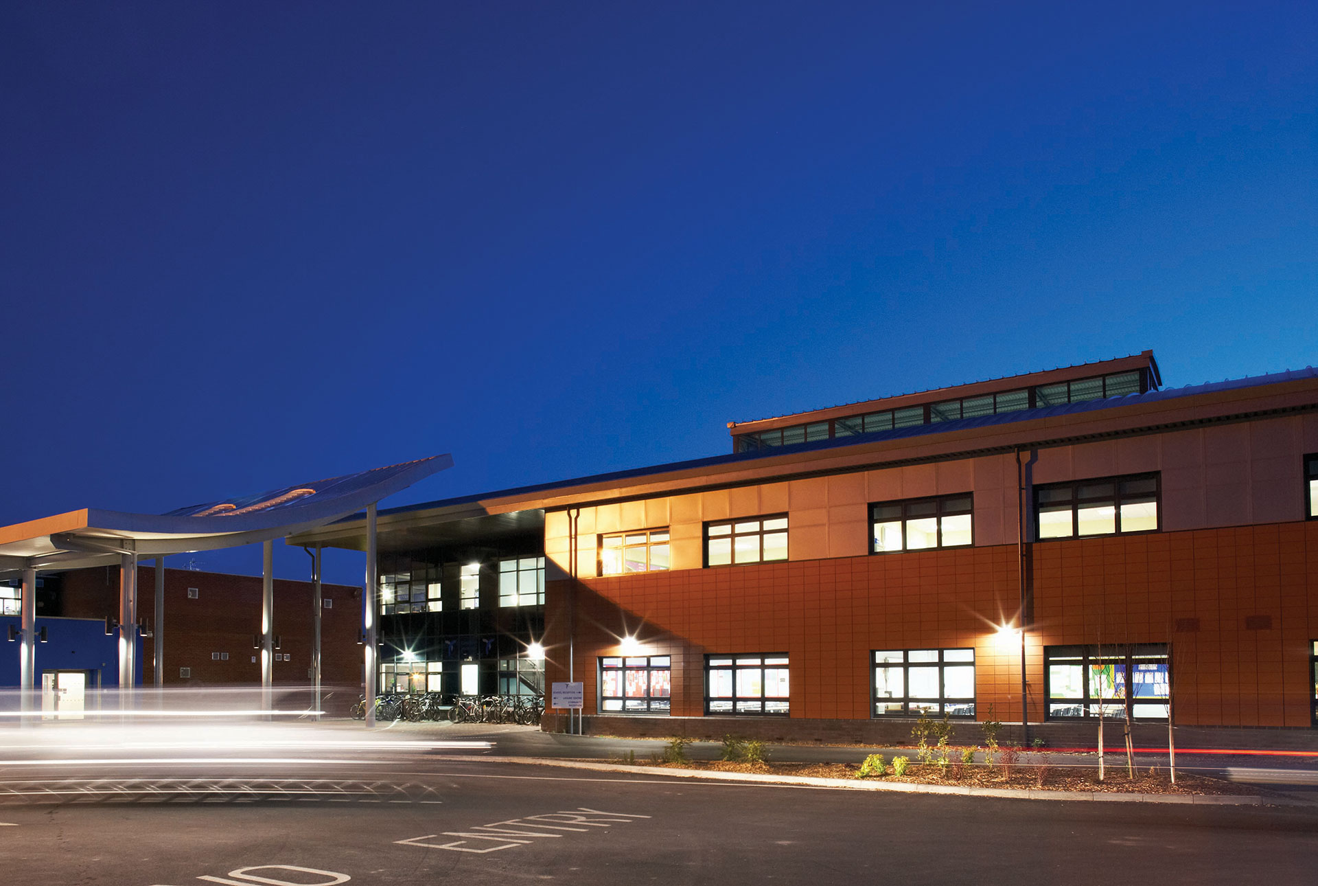 Teaching staff and pupils genuinely love this building. It is spacious and light, with wide corridors for ease of circulation. The external appearance is excellent. It makes a positive statement for the school and sits well with the existing adjacent sports centre – and the canopy brings both buildings together.
