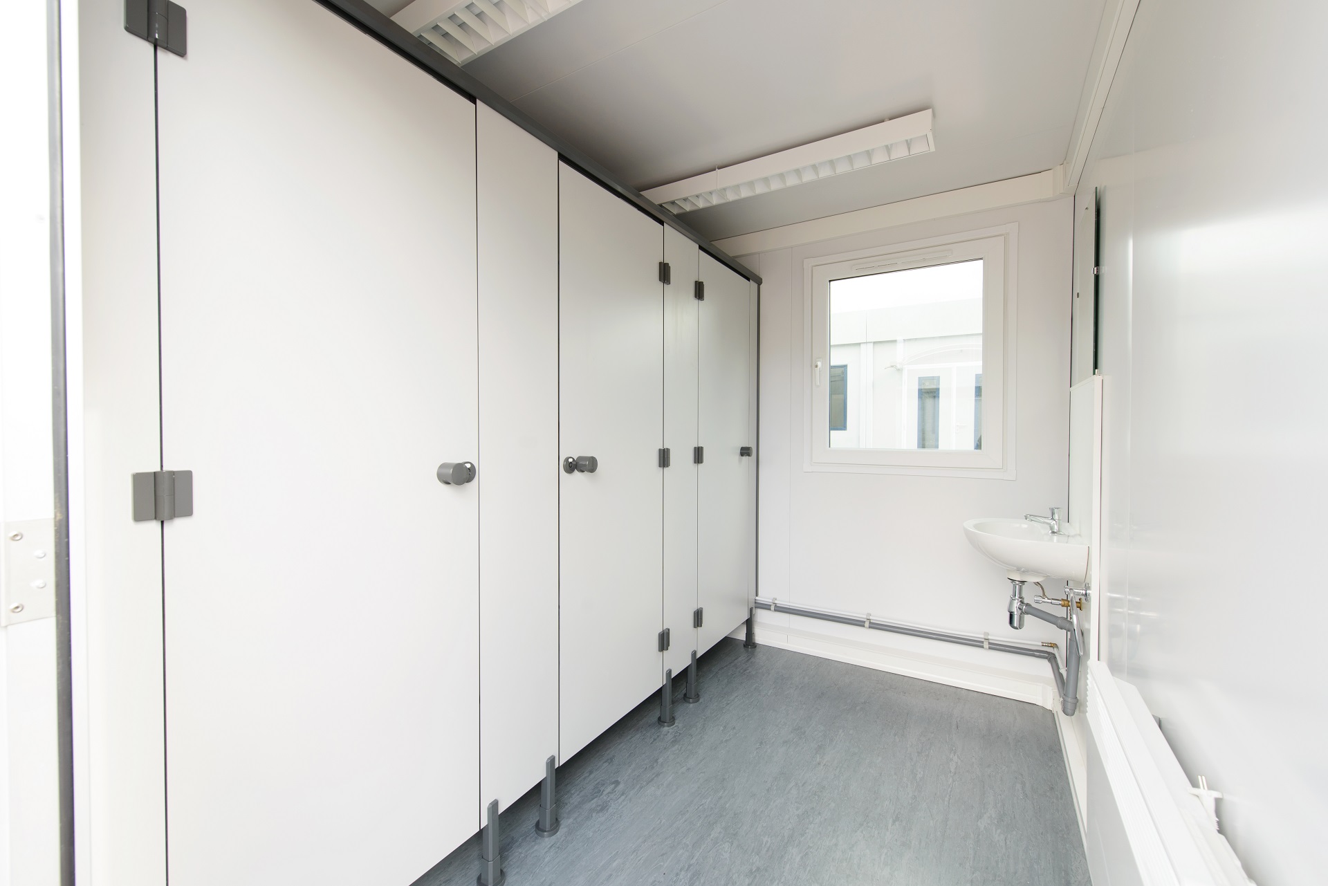 Alle unsere Sanitärgebäude sind mit Toiletten, Waschbecken mit Wasserhähnen für fließend warmes und kaltes Wasser und bei Bedarf auch mit Duschen ausgestattet. Selbstverständlich können Sie unsere Sanitärgebäude so lange mieten, wie Sie sie benötigen. Unsere Gebäude können an das Wasserversorgungs- und Abwassersystem angeschlossen und als eigenständige Gebäude versorgt oder mit anderen Gebäuden verbunden werden.