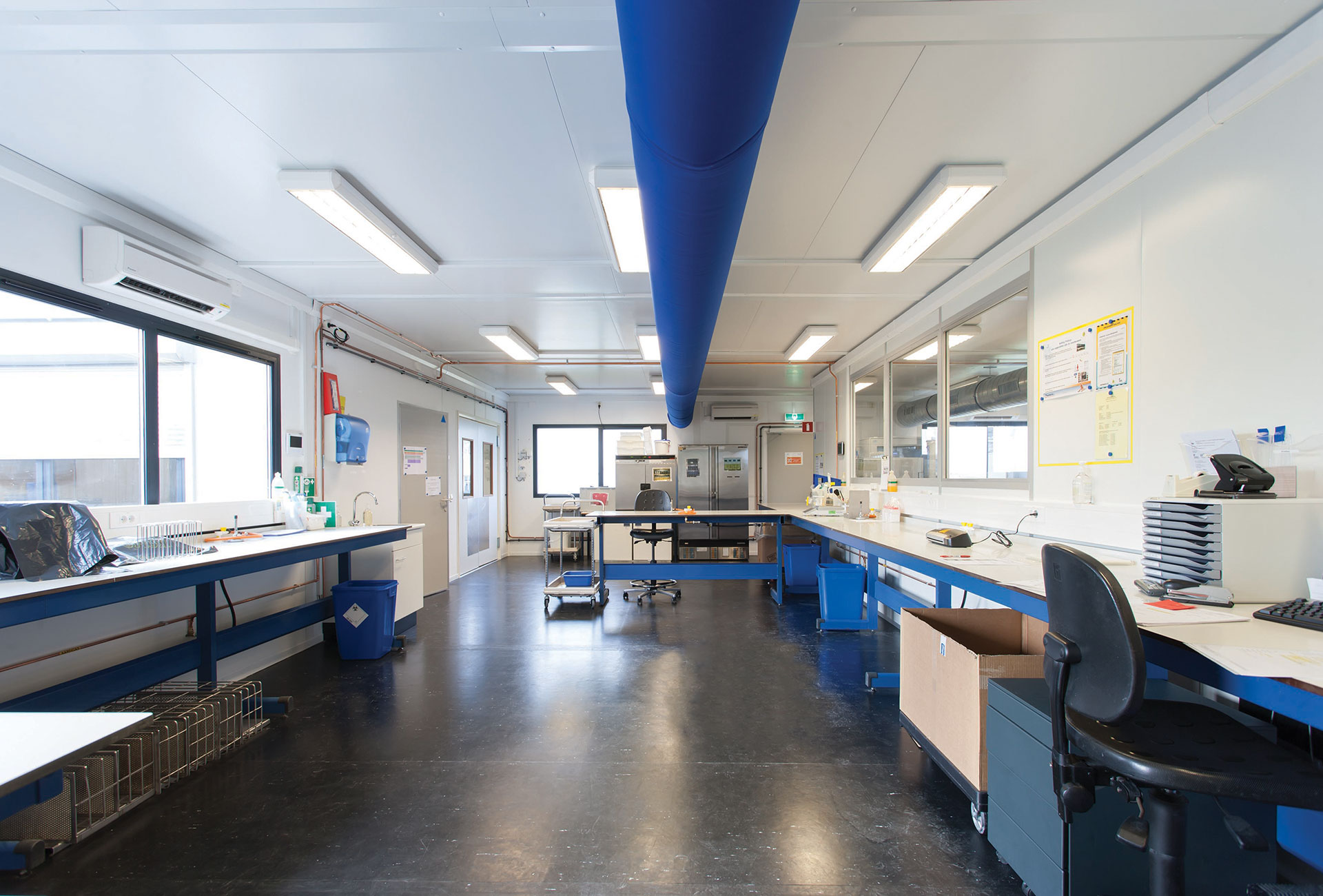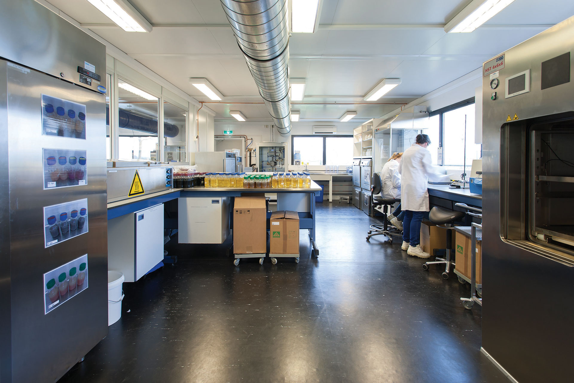 Een on-site laboratorium voor snelle kwaliteitstesten in een Portakabin gebouw