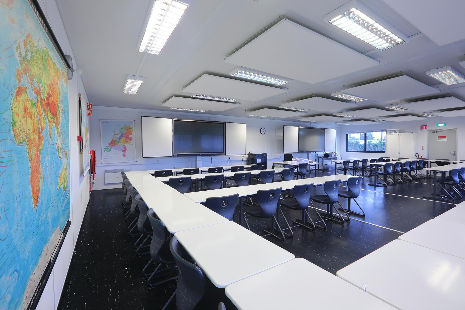 Een prettige leeromgeving in een kolomvrij lokaal voor 45 leerlingen